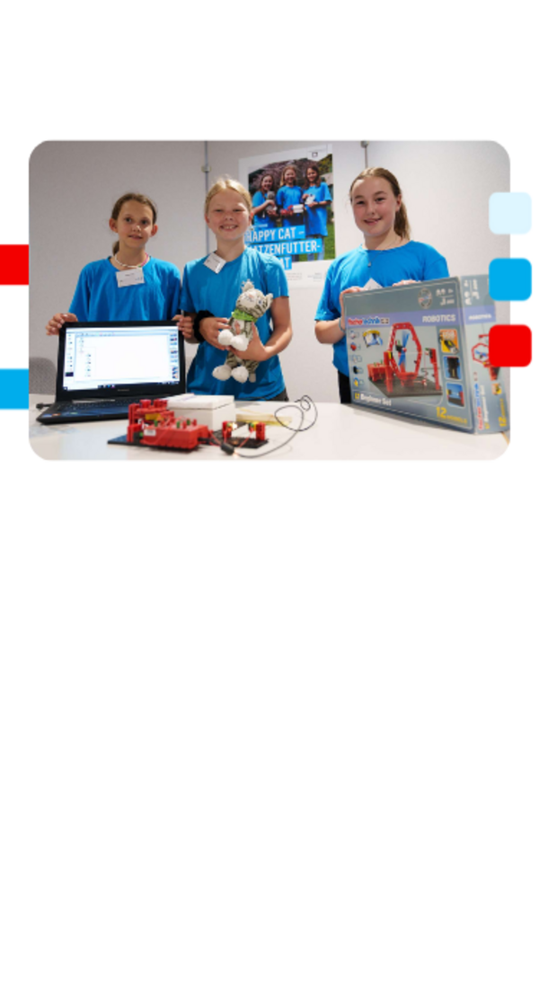 Für unsere Erfindung haben wir einen Baukasten von fischertechnik („LT Beginner Set“) benutzt. Wir haben zunächst die im Baukasten als Modell vorgesehene Schranke gebaut und diese anschließend zu unserem Katzenfutterautomat umgebaut. Hierfür mussten wir unter anderem dafür sorgen, dass sich die Schranke zur Seite statt nach oben öffnet. Das Öffnen und Schließen des Automaten mithilfe einer Lichtschranke programmierten wir mit der „Robo-Pro-Light-Software“ von fischertechnik. Zur Aufbewahrung des Futters bastelten wir erst ein passendes Kästchen aus Pappkarton und konstruierten ausgehend von diesem Modell ein stabiles Plastikkästchen mit einem 3D-Drucker. Wir entwarfen für das Kästchen auch einen Deckel, damit das Futter länger frisch bleibt. Zuerst verwendeten wir einen dünnen Plastikdeckel, da der Deckel sehr leicht sein muss, damit der Mechanismus der Schranke gut funktioniert. Dieser Plastikdeckel war aber nicht stabil genug, weshalb wir ihn durch einen Styropordeckel ersetzten. Da die Lichtschranke zu eng für die Katze ist, entwarfen wir noch ein Pedal, mit dem die Katze den Automaten öffnen kann. Die Öffnungszeit des Automaten lässt sich in der Software problemlos an die jeweiligen Erfordernisse anpassen.